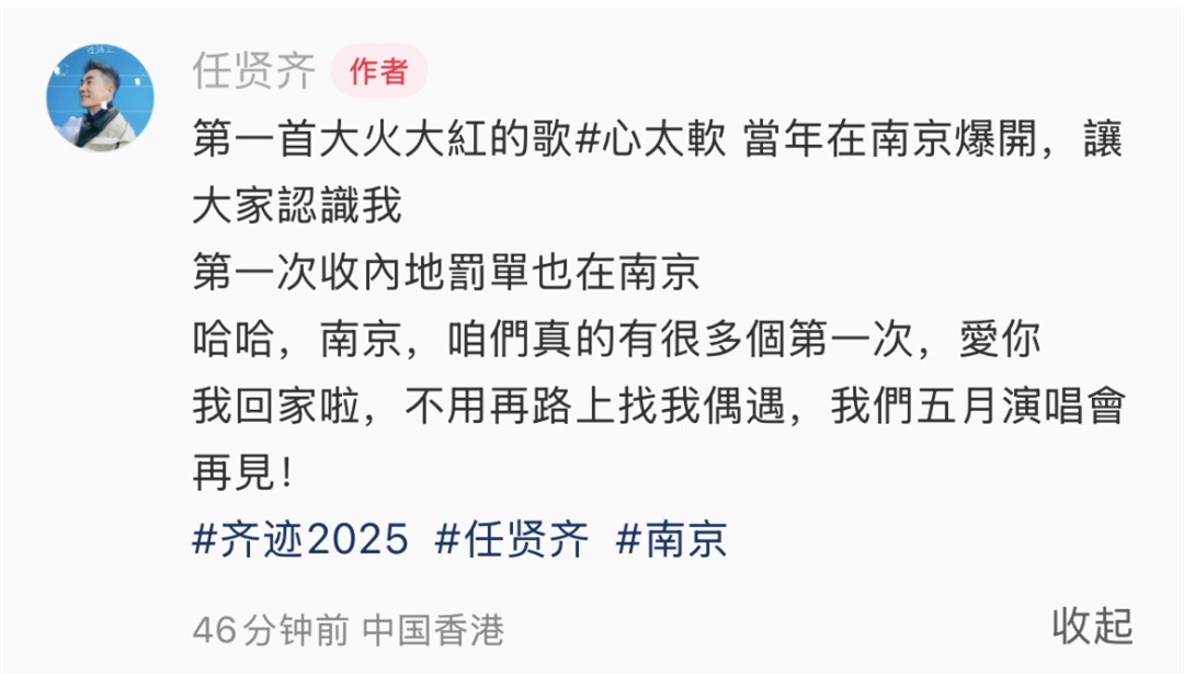 任贤齐还展示了他的罚单,并表示要扣分缴罚款,“下次要搞清楚一些交通法则,有些路线真的搞不太清楚,我们犯错要虚心接受”。