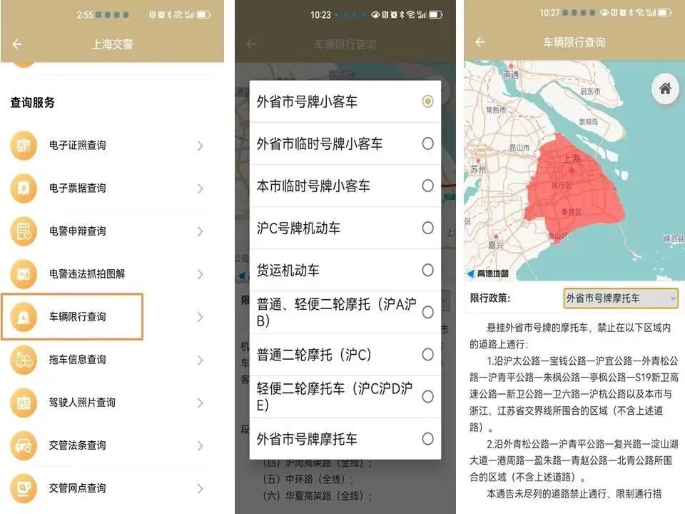 更多具体的限行规定,市民可以通过“随申办APP”中“上海交警”模块下的“车辆限行查询”功能进行查询。