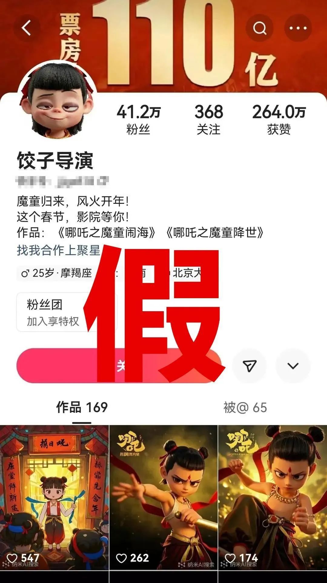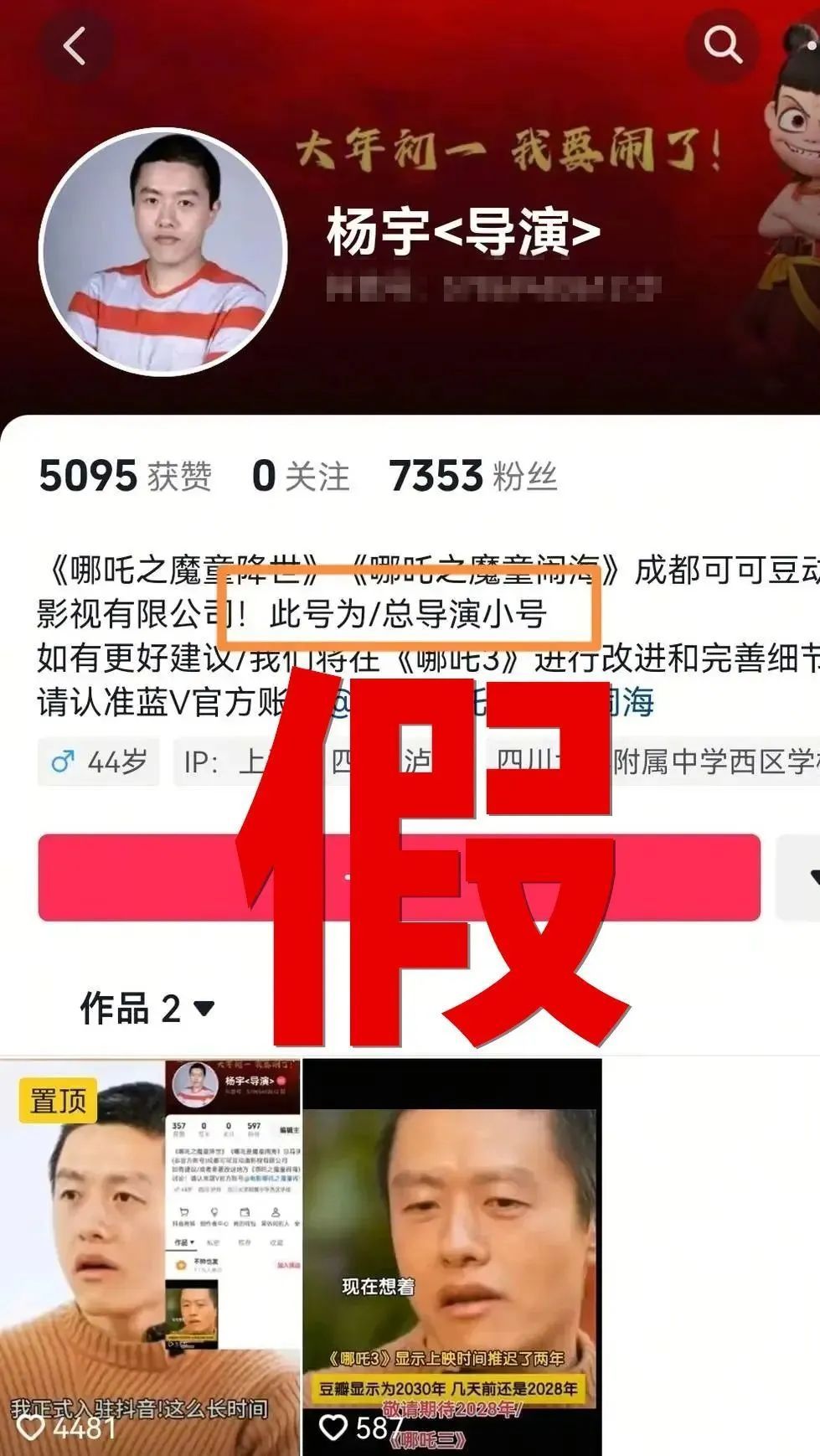 据封面新闻,记者向《哪吒之魔童闹海》(《哪吒2》)片方求证,工作人员回复称,微博认证的账号确属于饺子导演本人,在抖音及快手等平台上带饺子导演id的账号均为假冒,“我们也在密切关注”。