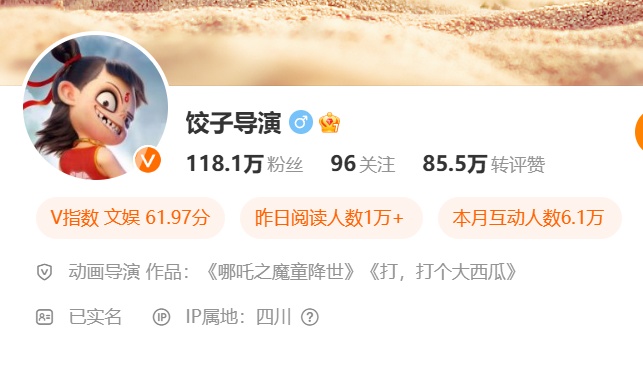 多名网友表示,有网友冒用热播动画电影《哪吒2》的导演饺子的名字,注册某短视频账号,短短几天便涨粉10多万,后来还将该账号以6万元的价格售出。之后还有自称是该账号的买家称账号买到手后掉粉且自己遭到网暴。