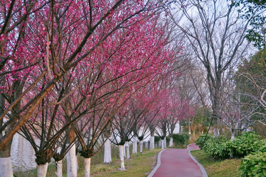 让身心沉浸在这“红云映碧波,梅语话江南”