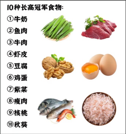 牛奶、豆制品、蛋类、牛肉等都是蛋白质的良好来源;蛤蜊、牡蛎、生蚝等海鲜类产品含有丰富的锌;猪肝、鱼虾、豌豆、菠菜等食物中含有丰富的维生素K;鱼肝油、蛋黄、三文鱼等食物以及适量的日晒,可补充维生素D。