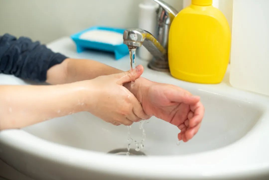 饭前便后、接触公共物品后,务必用洗手液(或肥皂)和流动水,按照“七步洗手法”仔细揉搓双手的每个部位,持续15秒以上。