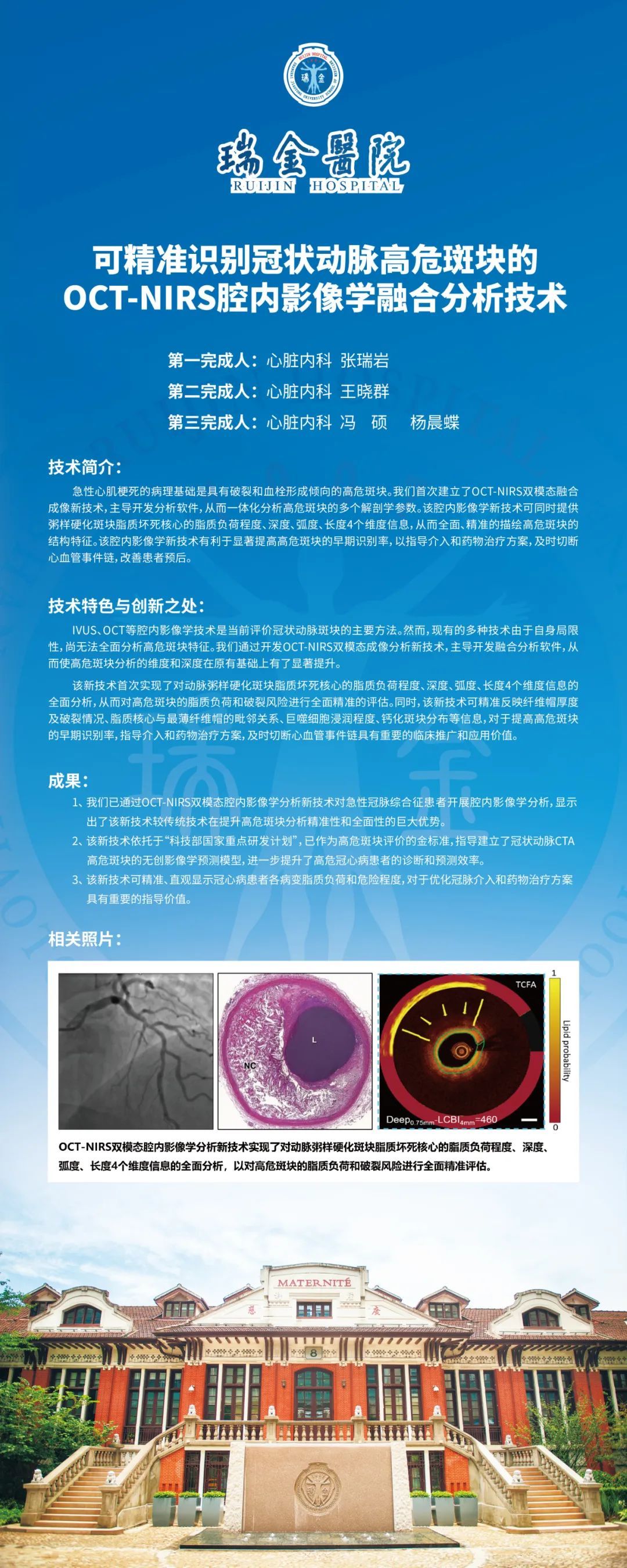瑞金医术:可精准识别冠状动脉高危斑块的OCT-NIRS腔内影像学融合分析技术