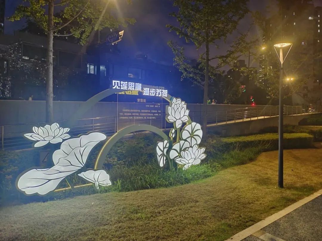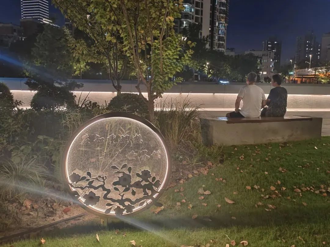 景观小品中安装了人体感应智能光控灯光,行人经过时会自动亮起,既保障了夜间道路的明亮,又增添了互动趣味,为市民带来新奇体验。