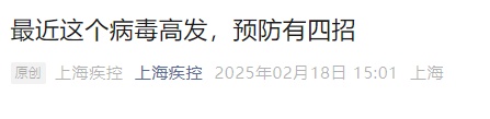 2月18日,“上海疾控”官方微信公众号也发布了预防提醒。