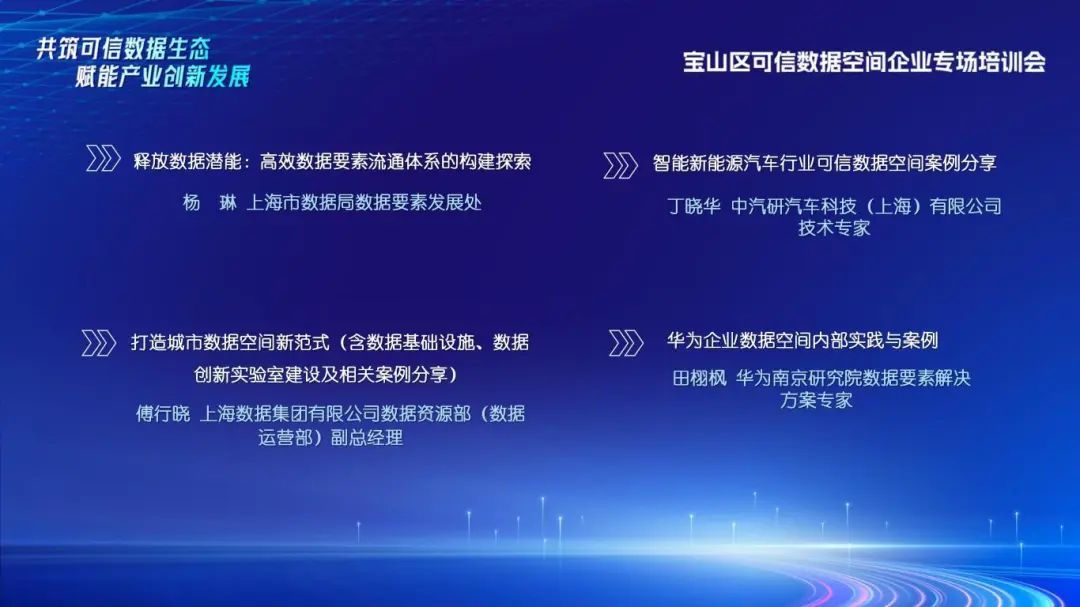在数字经济蓬勃发展的当下,数据已成为关键生产要素。举办此次培训会旨在推动企业参与可信数据空间建设,加强数据安全高效流通利用,赋能宝山主导产业发展,加快构建以数据为关键要素的数字经济。