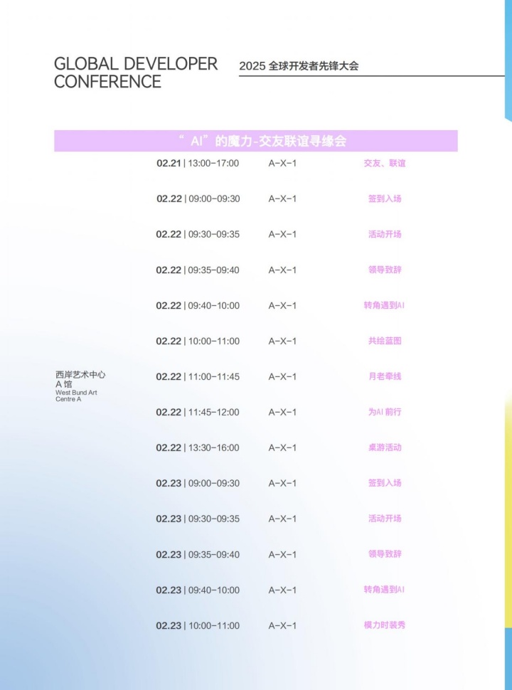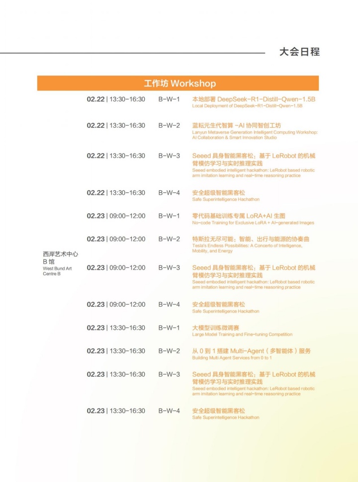 黑客松比赛:徐汇西岸会场将举办黑客松比赛,参赛者请务必携带电脑。