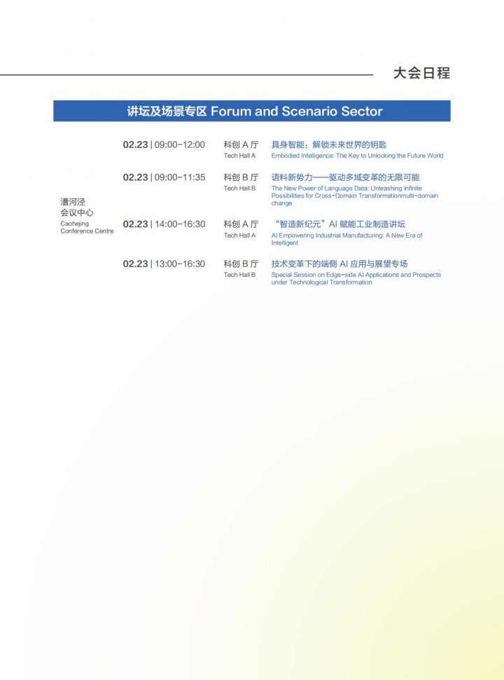 “开发者,找找找”。本次大会以“百人相亲、千岗直招、千种场景、万卡集群、百万年薪、千万大奖、百万招标、千亿基金、无限可能”的形式呈现,分别关注人工智能等科技产业生态、产业营商环境以及开发者群体三大板块。