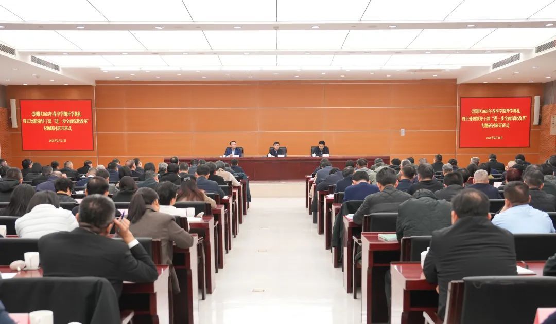 崇明区2025年春季学期开学典礼暨正处职领导干部“进一步全面深化改革”专题研讨班开班式举行