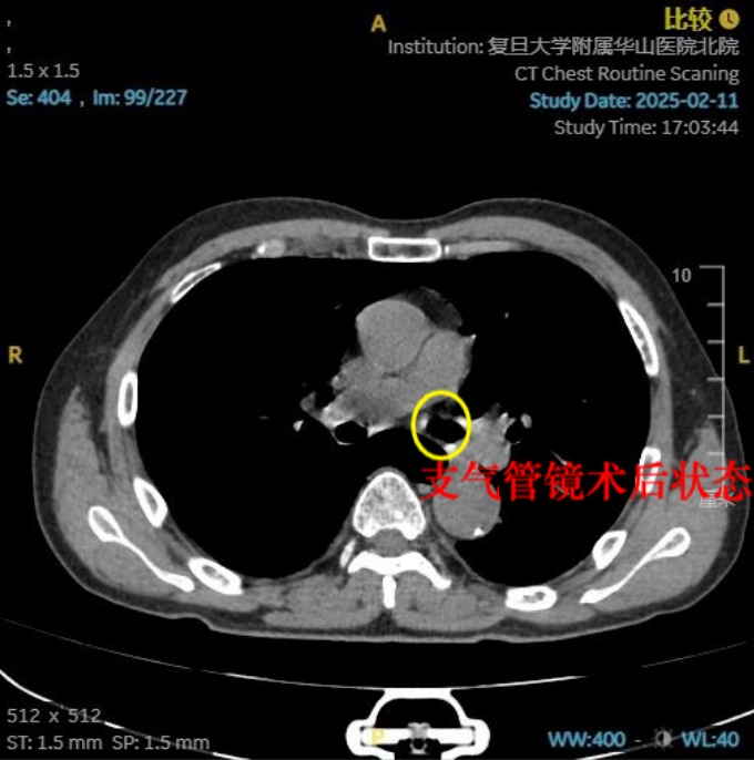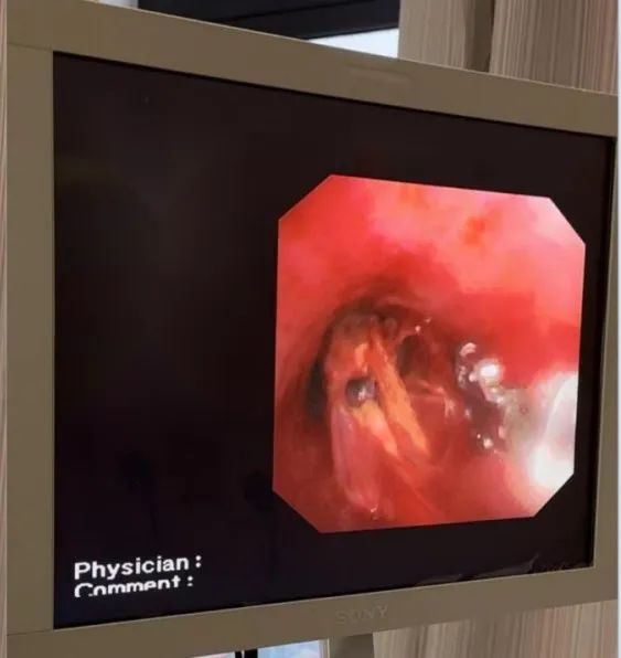 接诊的华山医院宝山院区呼吸与危重症医学科副主任医师杨海华介绍:“患者的虾是在左侧支气管里面,整个左侧主支气管被完全阻塞,无法通气,导致患者出现严重缺氧状态。当时我们给他测的氧饱和度只有85%,血气分析显示氧合指数只有157,属于Ⅰ型呼吸衰竭的情况。”