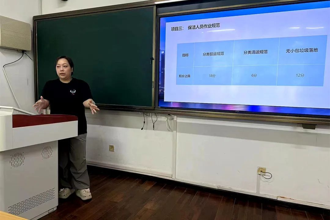 了解到CP静安的垃圾箱房已经全面改建成集精细化分类作业收运、员工教育培训基地和数字化管理系统于一体的创新型标准型精细化样板示范作业区后,街道城运中心志愿团队主动跨前,把专题宣讲课程送上门,从垃圾箱房环境、短驳收运细节、商户分类要求和公共场所精细化分类设施提升等多个维度详细讲解精细化分类的基础常识和规范标准。此外,志愿团队还开展了现场实操培训,进一步夯实培训效果,从细节处抓管理,为商圈精细化分类工作提质增效。