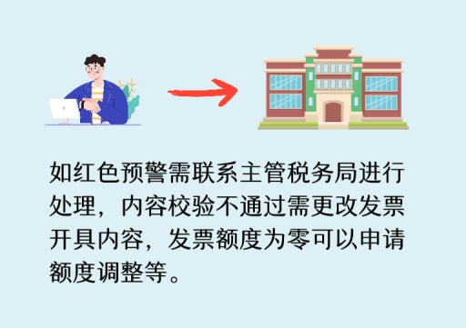 答:电子发票服务平台针对存在发票开具“红色”预警情形的纳税人、开具发票过程中存在内容校验不通过、发票额度为零等情形会阻断开票,纳税人需根据提示进行相应操作。如红色预警需联系主管税务局进行处理,内容校验不通过需更改发票开具内容,发票额度为零可以申请额度调整等。