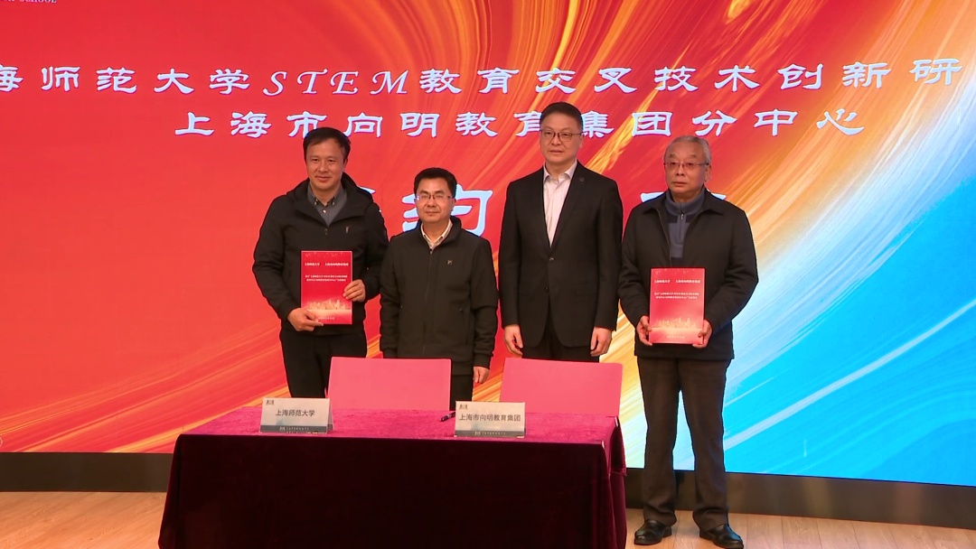 在主题活动中,上海师范大学与上海市向明教育集团正式合作共建“上海师范大学STEM教育交叉技术创新研究中心(向明教育集团分中心)”。这一合作不仅标志着双方在STEM教育领域的深度合作,更预示着向明创造教育新时代的崭新篇章即将开启。活动中,双方代表签署了合作协议,并共同为“上海师范大学STEM教育交叉技术创新研究中心(向明教育集团分中心)”揭牌。