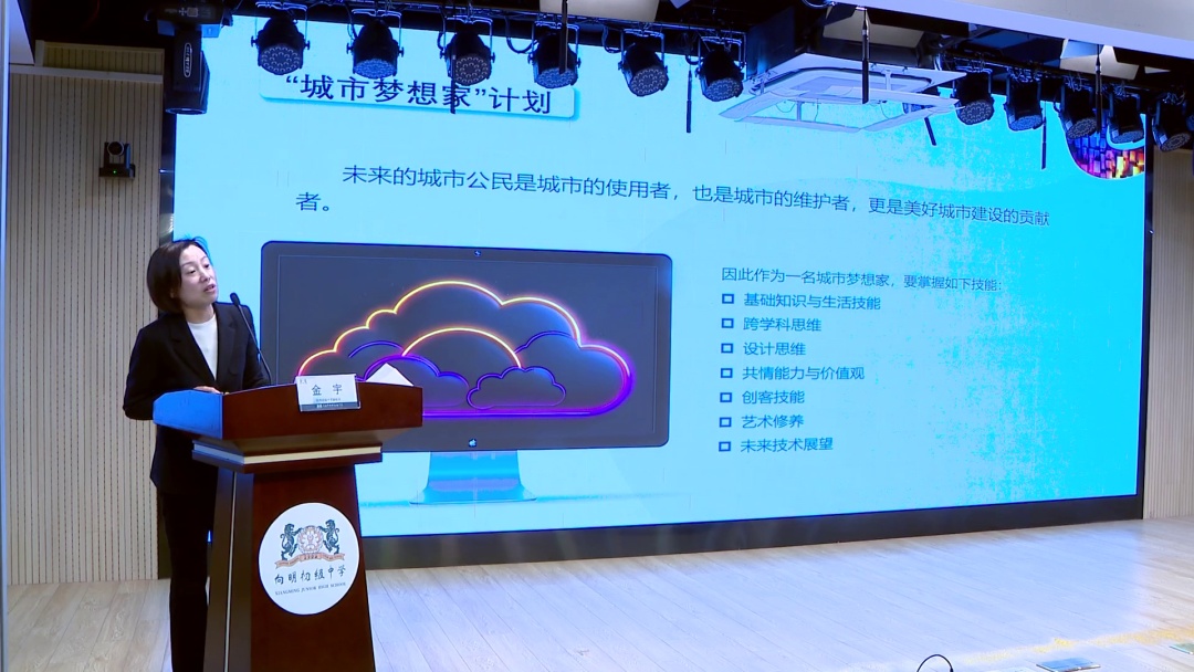 在揭牌仪式后,向明初级中学的教师团队精心策划,学生们通过生动有趣的情景演绎,回顾了《“豫”见城市山林》这一跨学科学习项目的精彩历程与丰硕成果。他们通过角色扮演、互动问答等形式,不仅生动展现了在项目实施过程中所遇到的挑战与突破,还分享了如何利用所学知识解决实际问题,以及在这个过程中如何激发创新思维、提升实践能力的心得体会。这一幕幕生动、充满创意的表演,充分展示了创造教育在培养学生综合素质方面的独特魅力。