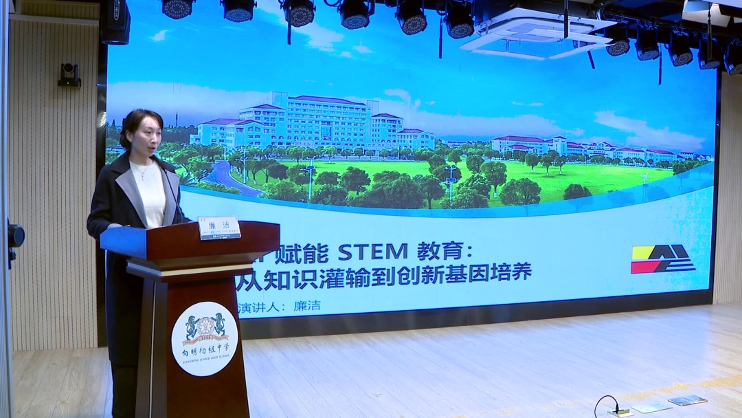紧接着,上海师范大学信息与机电工程学院计算机科学与技术系副主任廉洁与向明初级中学副校长金宇分别带来了精彩的主题演讲,为现场观众带来了关于AI赋能STEM教育的深度思考。