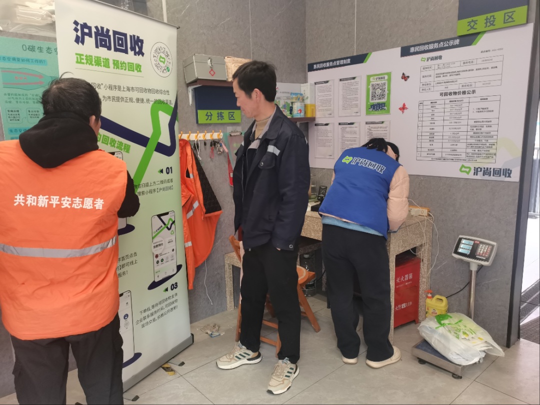 在共和新路1302弄的惠民服务点,“绿先锋”志愿者们打造了一个“绿色宣传站”,不仅为居民提供分类指导,还定期组织环保主题活动,用趣味互动的方式增强居民的参与感。