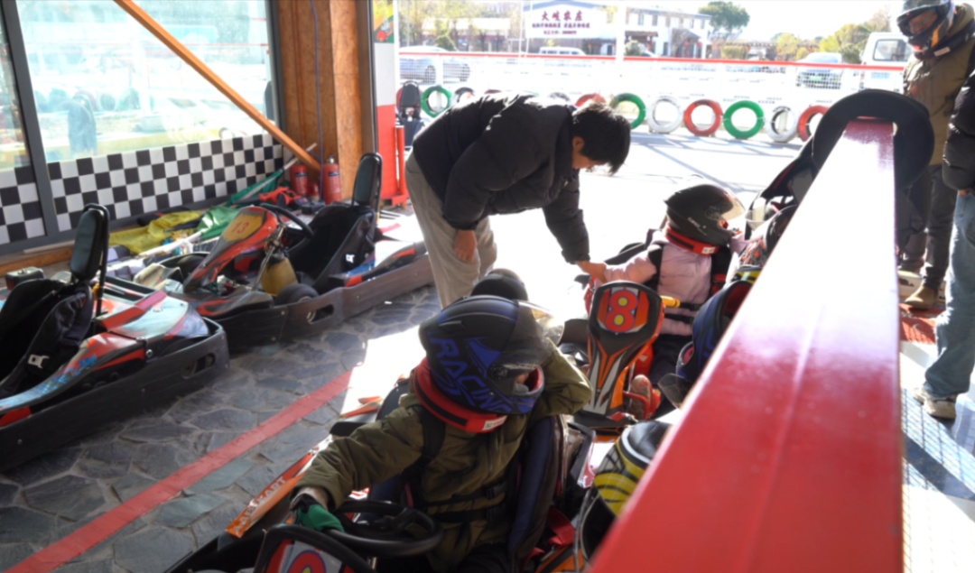 卡丁车运动凭借其独特的趣味性和竞技性,吸引了各个年龄段的人群来沈杨村打卡。一位年轻的父亲带一双儿女前来体验:“孩子喜欢赛车,之前在网上看到这家卡丁车俱乐部的评价很不错,就多次带孩子前来,满足孩子‘小小赛车手’的梦想。”