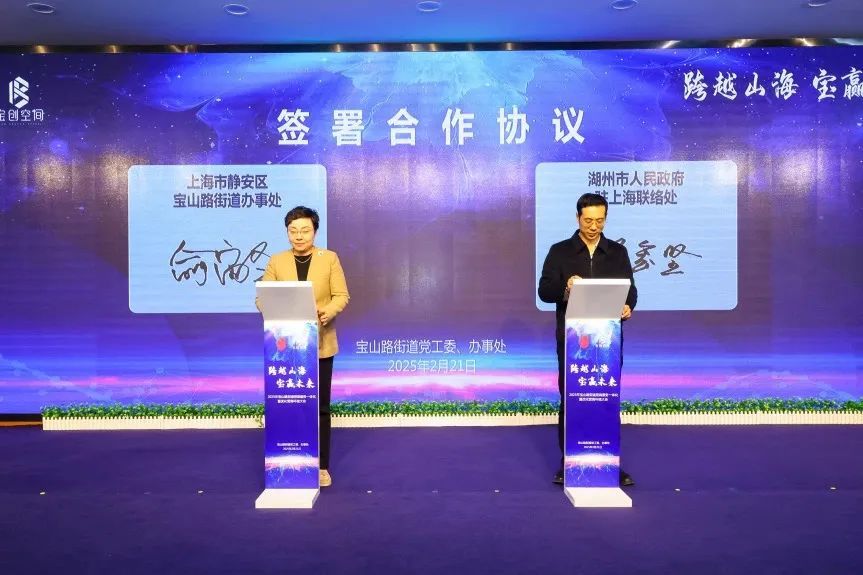 此外,宝山路街道办事处与湖州市人民政府驻上海联络处签署战略合作协议,双方将围绕产业互补、资源共享、人才交流等领域深化合作,探索长三角区域协同发展新范式。