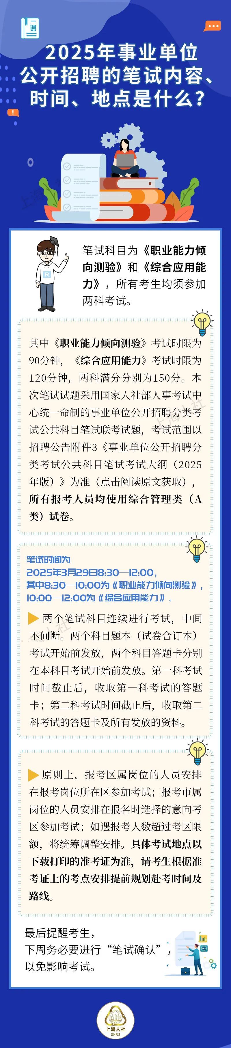 2025年事业单位公开招聘的笔试内容、时间、地点是什么?