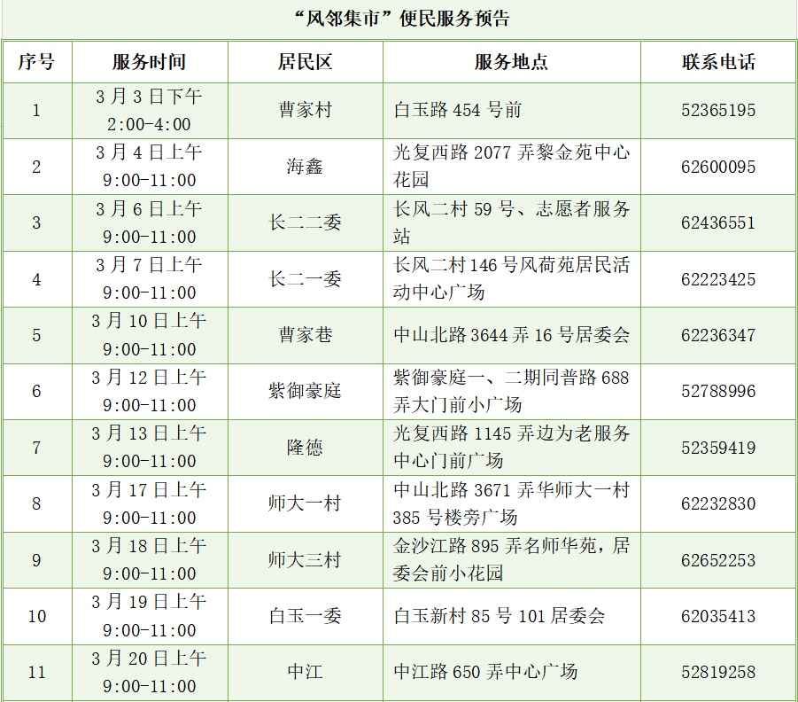3月“雷锋月”即将到来,为进一步传承雷锋精神,弘扬“奉献、友爱、互助、进步”的志愿精神,打造家门口的“便民生活圈”,长风新村街道“风邻集市”志愿者团队将带着满满的热情与丰富的服务项目,为居民幸福生活持续“升温加码”。
