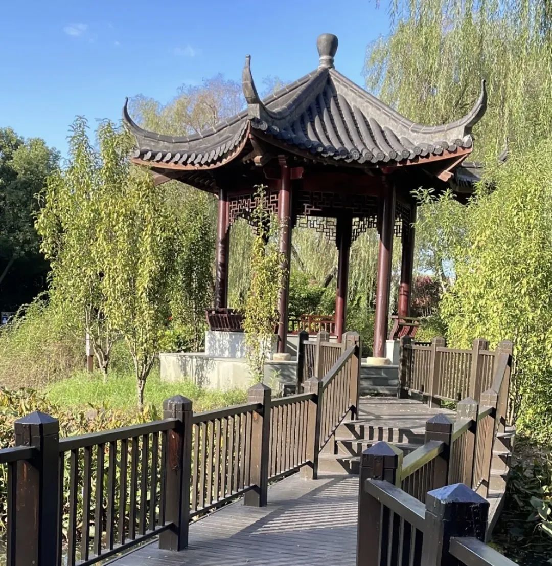 大家都是否猜对了呢?长江的浪涛拍打堤岸的节奏在这里变得舒缓,长江口的季风穿过悬铃木的枝桠时悄悄放轻了脚步。1985年诞生的瀛洲公园,像一块碧玉镶嵌在崇明南门的江畔。这里不仅有郁郁葱葱的树木、碧波荡漾的湖水,还有充满诗意的园林建筑和丰富的休闲设施。无论是晨跑、拍照打卡,还是与朋友小聚、静享时光,瀛洲公园都能满足你对自然与生活的所有想象。