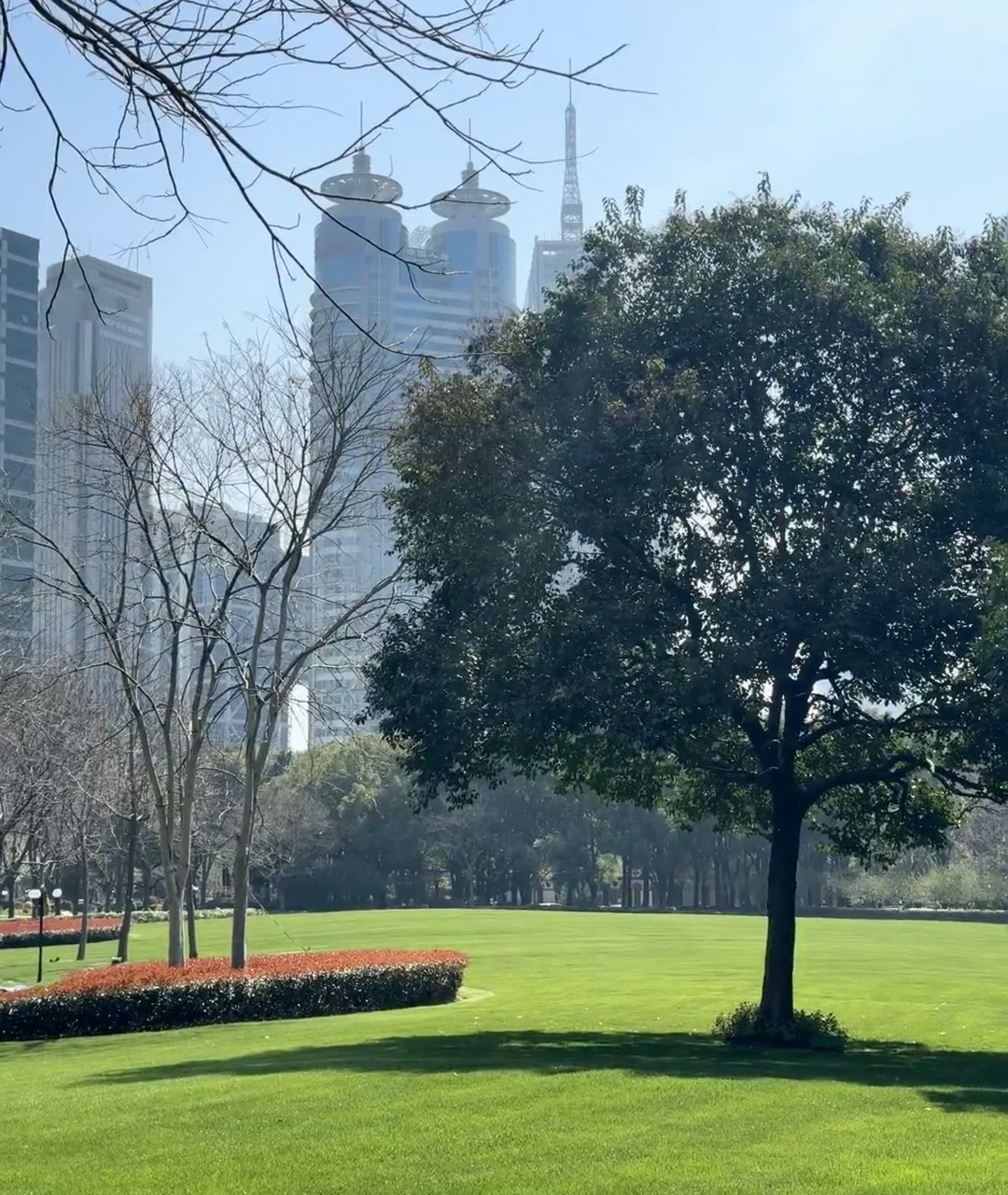 黄昏中,若是站在陆家嘴中心绿地,环望着四周的高楼大厦,在夕阳西下的余晖中,闪耀着缕缕金光;