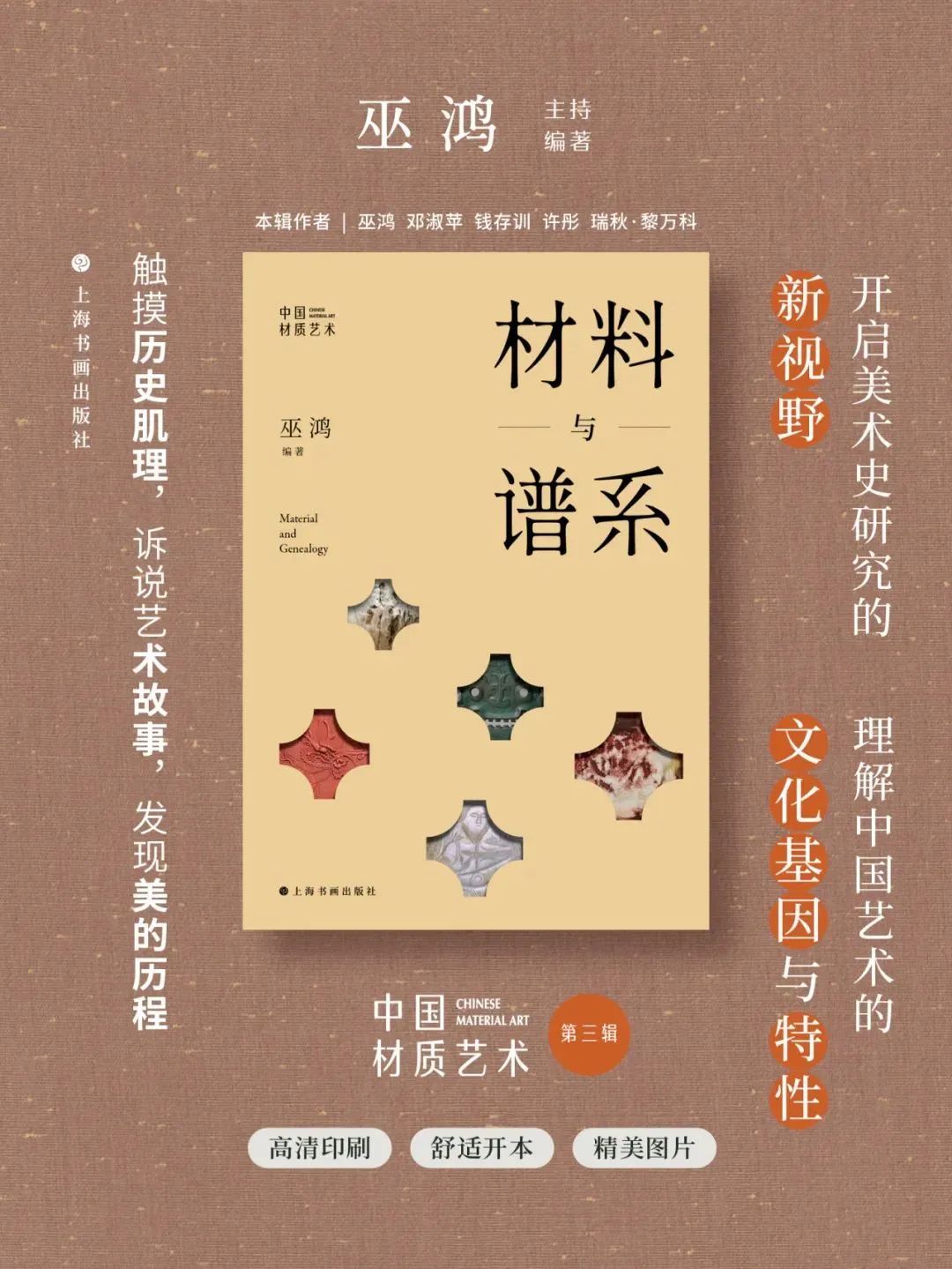 2023年春,由美术史家巫鸿教授主持、编著的“中国材质艺术”系列丛书首次面世。巫鸿教授指出,“材质”不仅是艺术品的物质基础,也是艺术内涵和精神表达的重要媒介。该系列丛书深入探讨了中国艺术中各种材质的历史渊源、文化背景、技术演变以及感官体验等多个维度,旨在揭示材质在艺术创作与审美体验中所承载的丰富内涵与深远价值。