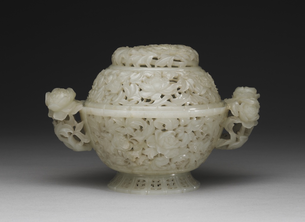 清中期,花叶纹玉香炉,高12.9厘米