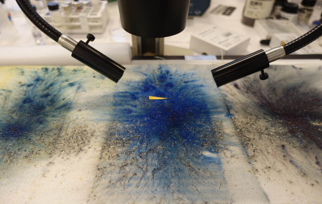 显微镜观测画布上的蓝色火药,Andrzej Liguz摄