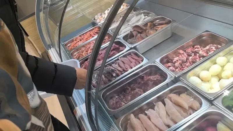 首店面积达200平方米,店内装修简约而不失温馨,宠物用品区、鲜食制作区、社交互动区等功能区域划分明确。在保留宠物干粮、湿粮、猫条、罐头等传统产品的基础需求上,派特鲜生进行宠物食品的全品类创新,以“鲜”为核心,推出现制现售鲜食、冷藏鲜食、面点主食及烘焙创新糕点,还有超300款量贩零食散装陈列。有网友打趣:狗子的饭,把我给看饿了。