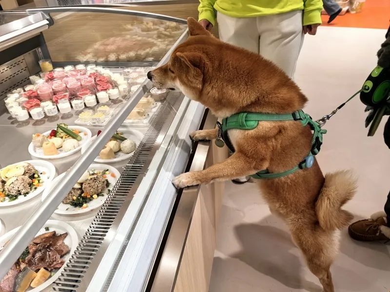 柴犬“拿铁”在鲜食柜台不住嗅闻 新民晚报记者 钱文婷 摄(下同)
