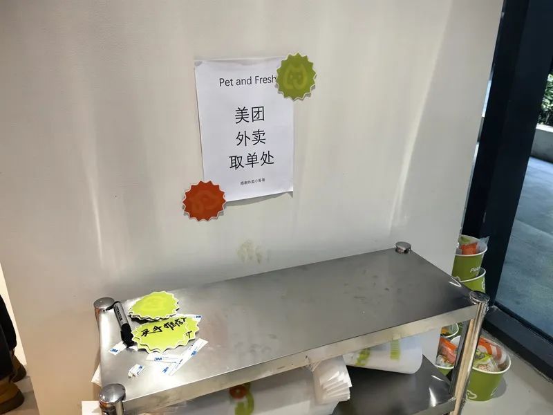 门店收银区一侧还设置了一块“外卖取单处”,派特鲜生支持线上下单,门店3公里内小程序半日达,美团外卖30分钟送到家。宠物繁育专家“哆哆&cat”点赞外卖模式:“我就住在这附近,平常又懒得做饭,如果有专业人士帮着搭配猫狗营养鲜食再好不过。”