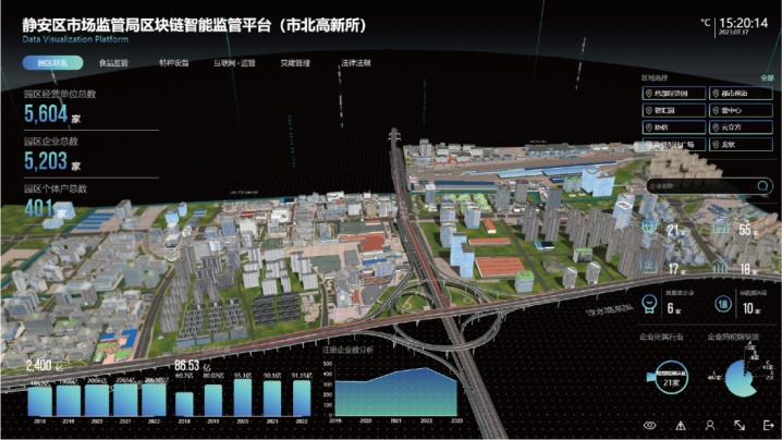 在总部经济园,智慧税务社会共治点、静安首个产业园区市场监管所、大宁路派出所市北高新园区分部、静安区人民检察院法律服务工作站、市北高新园区人力资源服务线下体验站……10余个政务服务前移窗口推动企业“跑出”发展加速度。