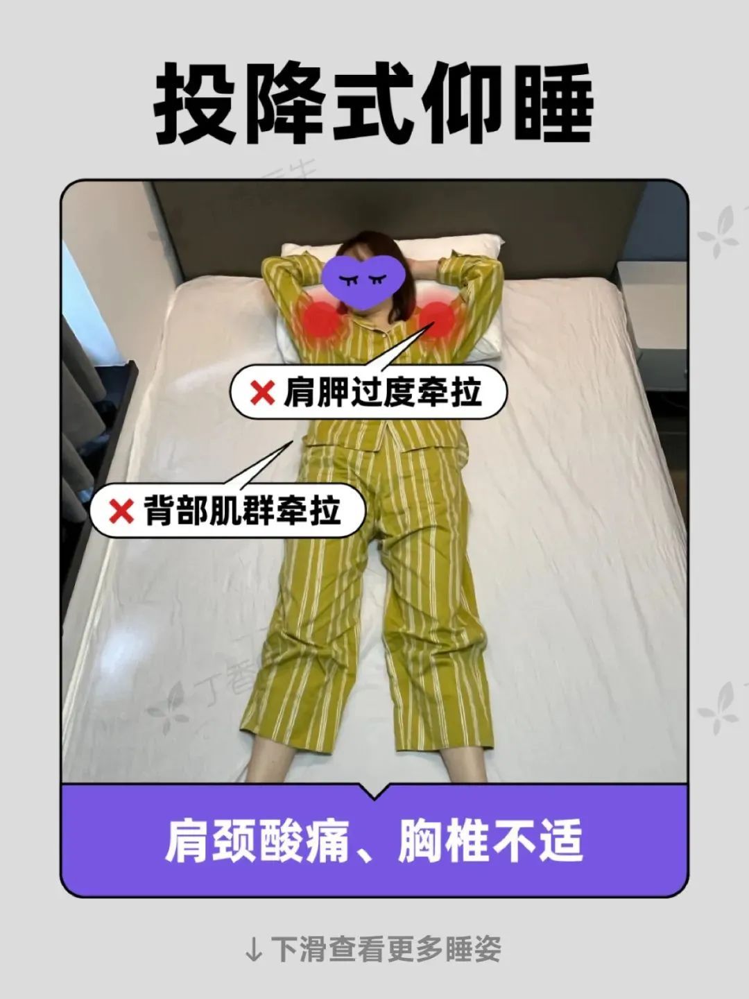 其实,这有可能是睡姿的“锅”。姿势千奇百怪,却有一些伤身的共性,比如:局部肌肉过度牵引紧张,器官内脏受压迫,伴随着酸痛和僵硬,脊柱、腰椎变形等等。