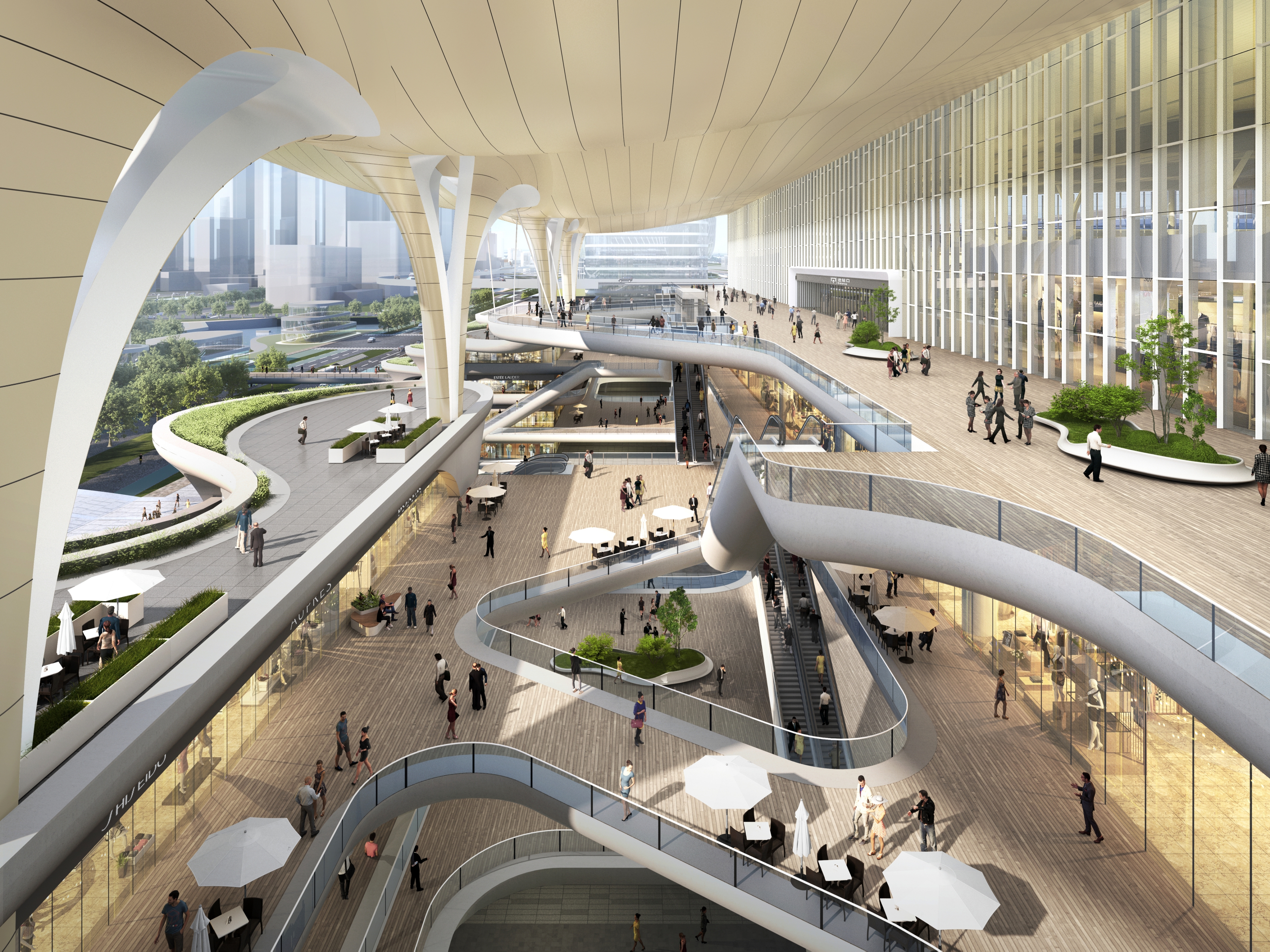 候车大厅设计效果图 在功能布局上,项目贯彻“站城融合”理念,采用“上进夹层出”的旅客进出站流线设计,将地面层打造为城市活动空间和交通换乘节点。夹层作为出站换乘区域,地面层作为城市公共空间,南北光谷作为站城客厅,通过站房、综合配套及枢纽周边地块的TOD互联互通,实现“站城一体”,多层次、多维度满足旅客换乘需求。室内装修秉承“重结构、轻装修、简装饰”的原则,适度融入苏州地域文化元素,营造独具特色的城市印象及空间氛围。