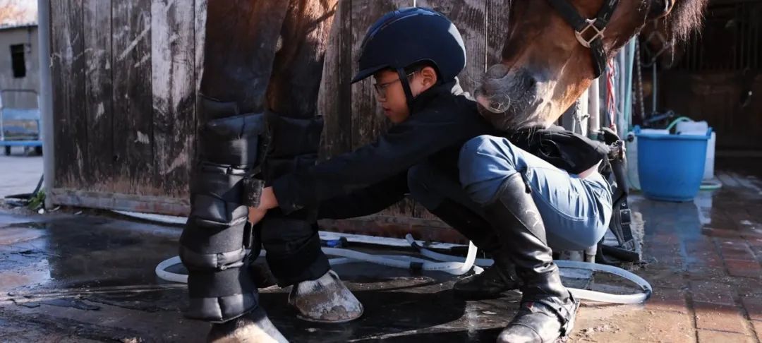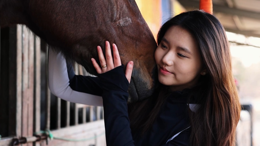 对于初涉马术的小白来说,与马建立良好的沟通至关重要。教练王世界介绍,马作为食草性动物,天性胆小,所以当学员靠近马时,不要突然出现在它面前或做出激烈快速的动作。正确的做法是,先发出一点声音或者轻轻呼唤它的名字,还可以轻轻摸摸它的脸颊来建立初步的信任和亲近感。