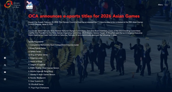 亚洲奥林匹克理事会官方网站显示,本年度的亚运会电子竞技项目阵容已扩大至11项。相较于杭州亚运会,2026年的亚运会不仅在项目总数上增加了5个,而且进行了相应的项目调整。值得关注的是,《宝可梦大集结》、《PUBG》亚运会特别版、《决胜巅峰》、《GT赛车7》、《eFootball》系列以及《Puyo Puyo Champions》等游戏将首次登上亚运会竞技舞台。