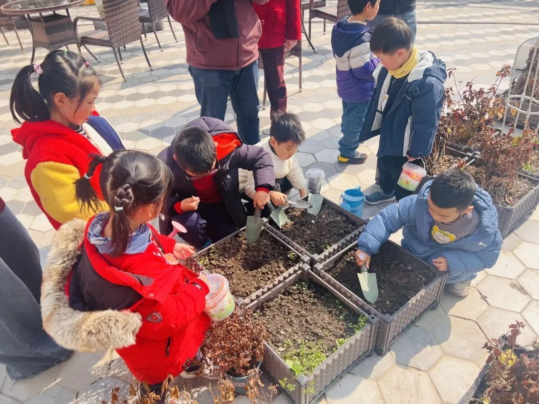 种植环节中,孩子们先在室内制作了花朵手工,随后来到了文化佳园社区睦邻中心精心打造的空中花园,播种花草的种子,并约定之后定期来浇水,共同见证小花小草的健康成长。阳光下,一把把小铲子铲进泥土中,空气中弥漫着土壤和花草的清香,让人身心愉悦。