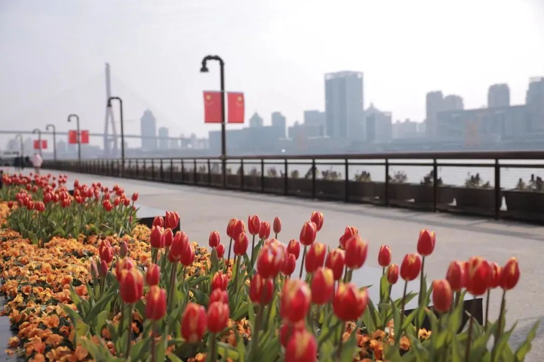 气温回暖,杨浦滨江一年一次的“春日限定皮肤”已上线。成片的郁金香花竞相绽放,随风摇曳,将滨江岸线装点成流动的油画,吸引了不少市民前来打卡。
