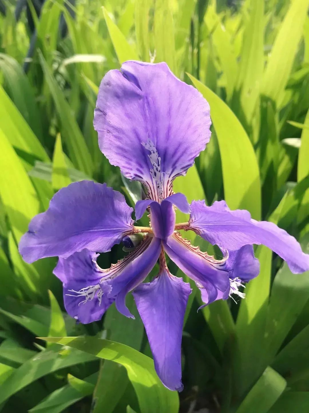 鸢尾花优雅的姿态和独特的蓝紫色花瓣,吸引了不少游人的目光。在南菁园、青溪园等地,鸢尾花随风摇曳,宛如一群穿着蓝紫色裙裳的仙子,在春日里翩翩起舞。