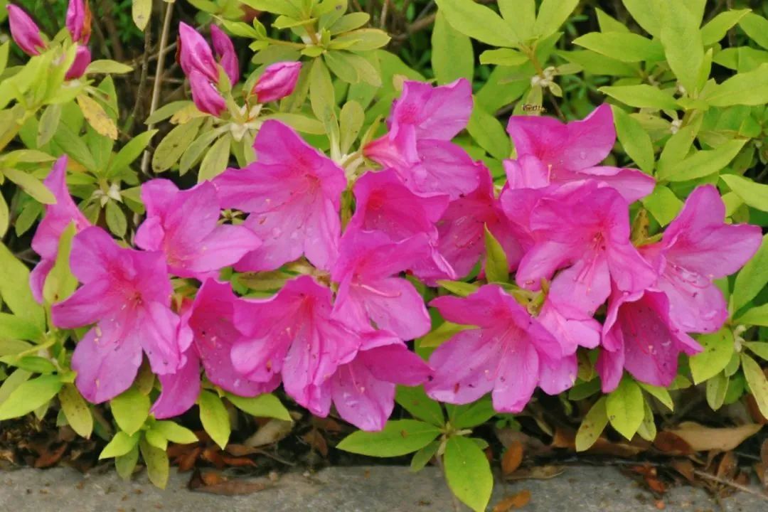在青浦环城水系公园的晨兴公园、如心公园等地,杜鹃花以它那如火般的色彩,为春日画卷添上了浓墨重彩的一笔。它们或红得热烈,或紫得高贵,点缀在绿叶之间,犹如繁星点点,让人流连忘返。