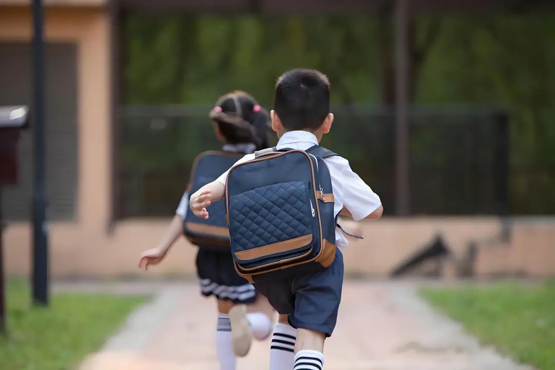 家长应让孩子选择双肩宽背带书包,避免单侧负重,学生的课桌与椅子高度匹配,双脚平放地面,脊柱自然垂直。