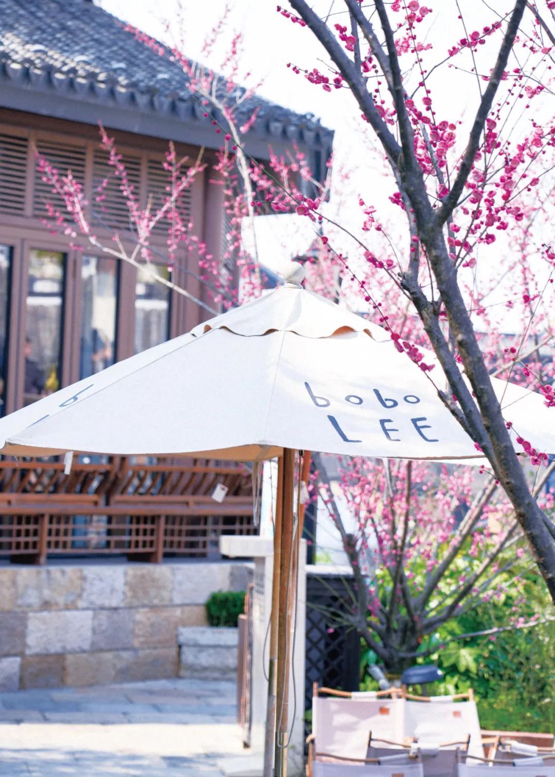蟠龙天地的十字街上,古韵建筑和时尚造景让人赏心悦目,老字号与新潮牌相映成趣。河岸边,几株红梅开得正艳,花瓣随风飘落,在水面上随涟漪轻轻荡漾。