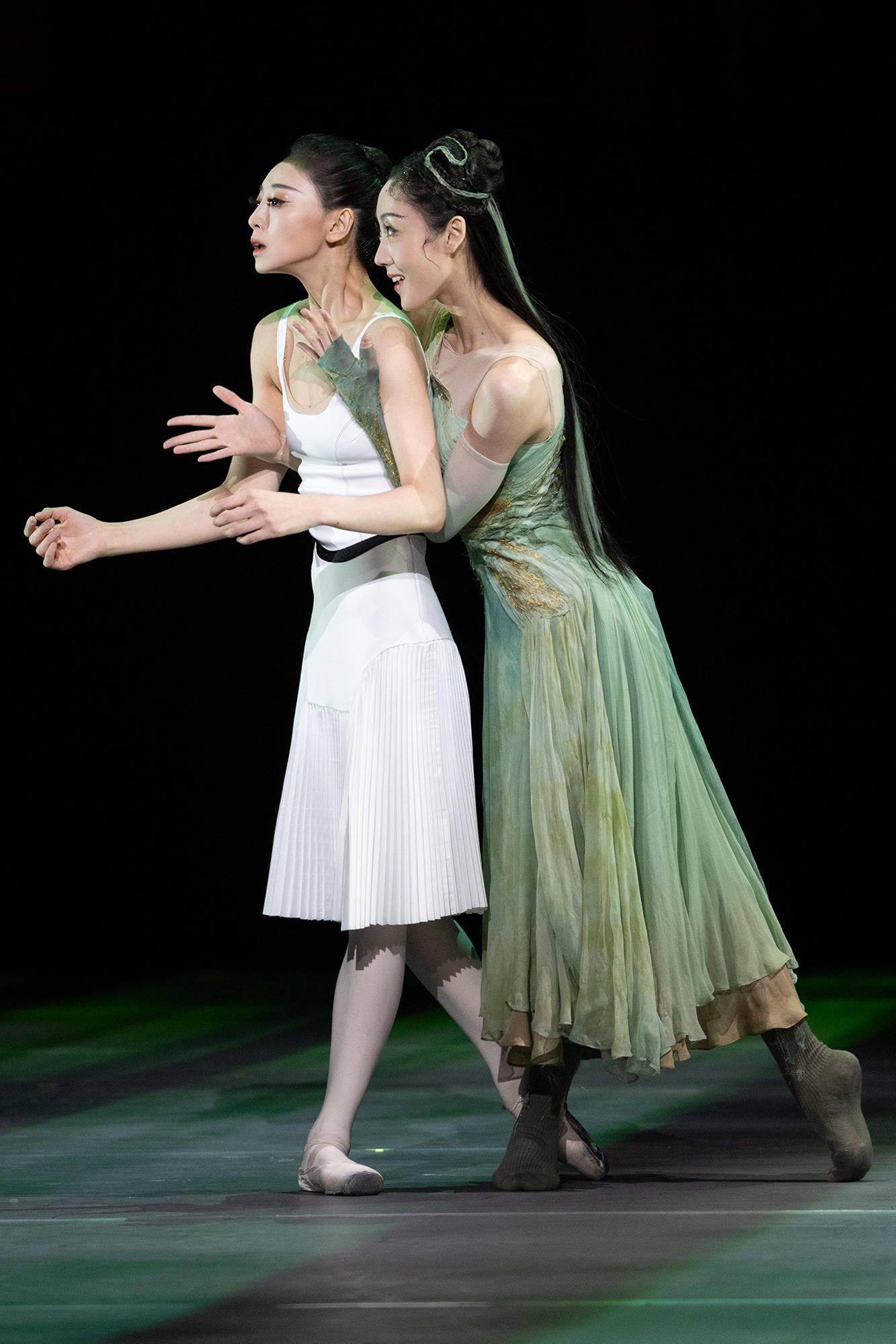 另一大变化在于舞蹈。青年编舞家王培先加盟此轮创排,在群舞的创作上将中国的古典舞与西方的现代舞相融合,使得舞种碰撞超越了简单的形式叠加,而是在碰撞中构建了“传统与现代”“束缚与自由”的隐喻体系,使得独属于《白蛇》的美学风格愈发鲜明。