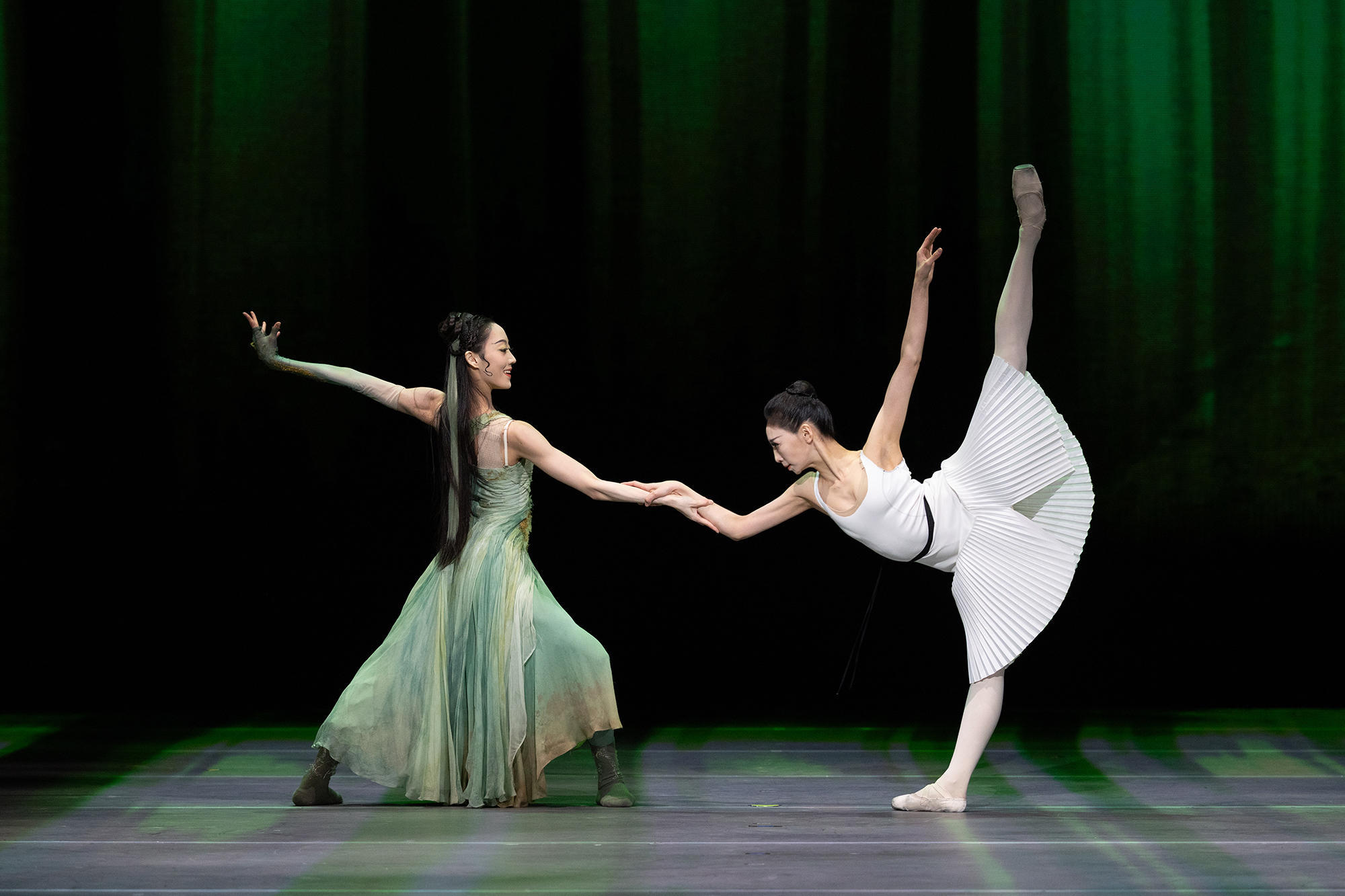 舞剧《白蛇》分为“梦蛇”“化蛇”两幕,以惊蛰、谷雨、芒种、端午、中秋等节气和佳节命名分幕场次,以“东方舞台美学”为核心,将中国传统文化符号转化为世界性艺术语言。