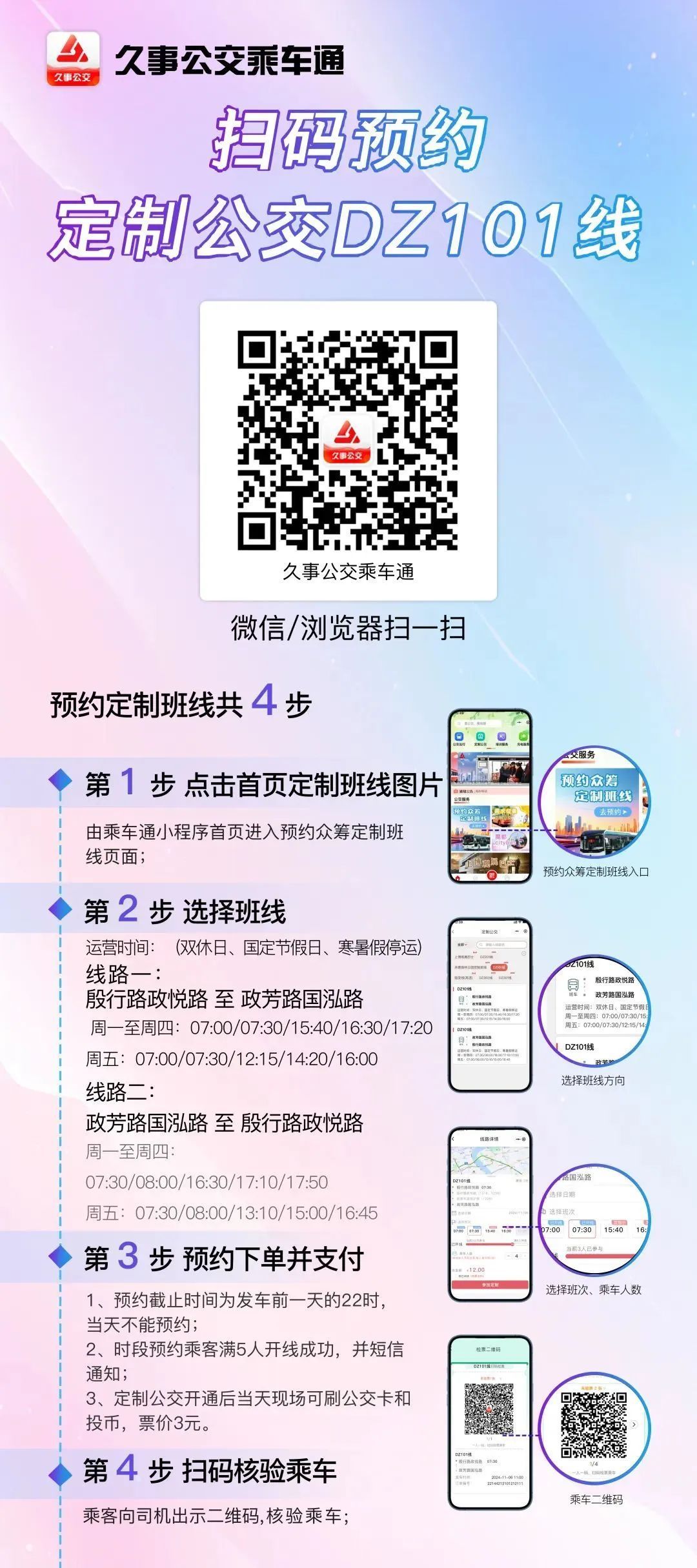 近日,杨浦区首条定制公交线路DZ101线正式开通运营。该线路从家门口直达校门口,全程20分钟左右,无需换乘,解决了新江湾城部分学校的学生上学不便的问题,为市民提供更加便捷、高效、个性化的公共交通服务。