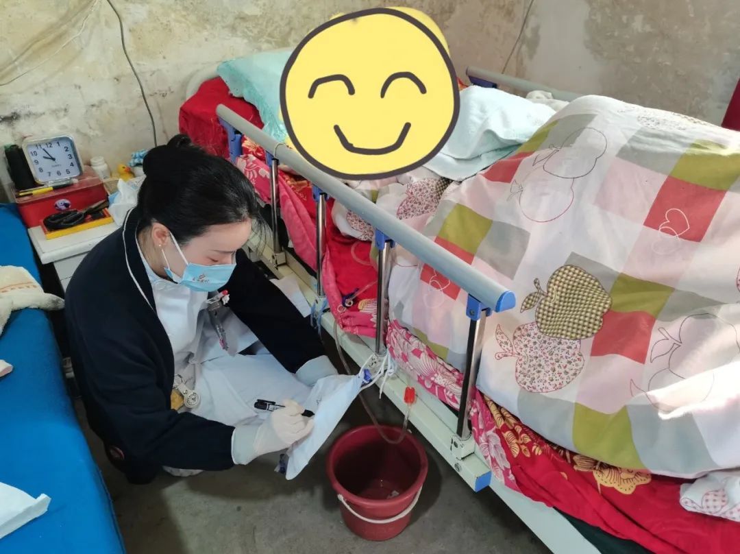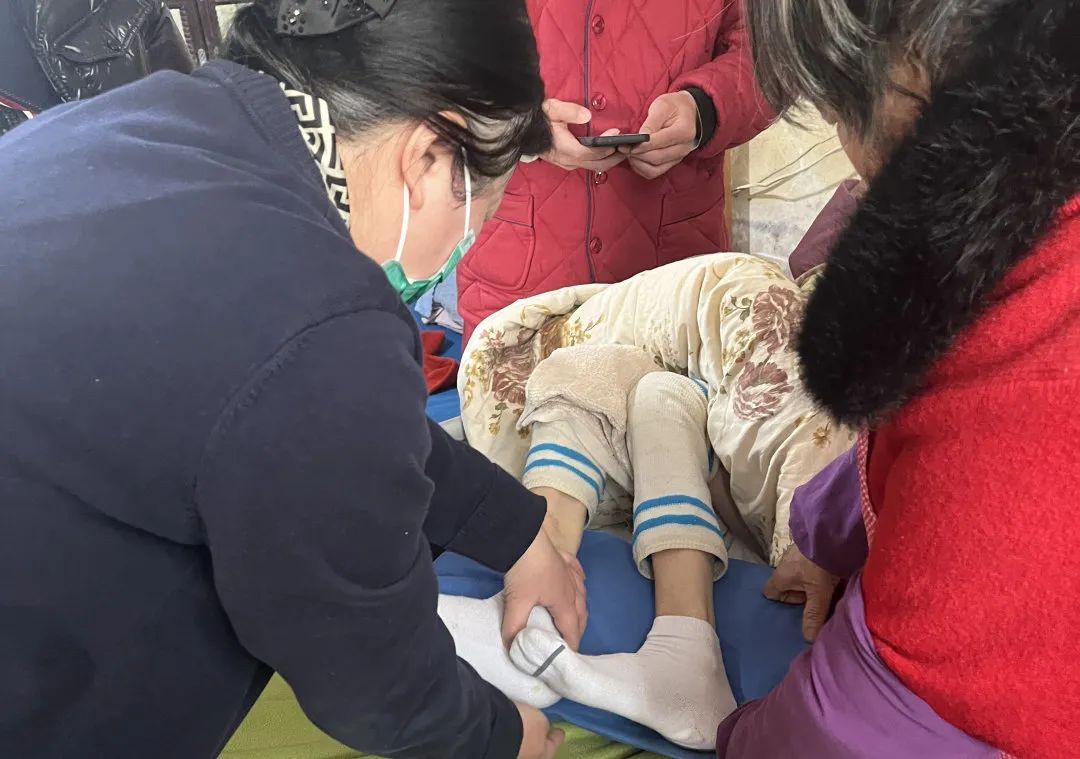 第一次上门随访,陈丽丽护士长就给了包阿姨一家极大的安慰。她轻声细语地询问包阿姨的情况,为包阿姨更换了导尿管,仔细检查并更换伤口敷料,伤口看起来又比之前小了一点。由于包阿姨长期卧床易引起坠积性肺炎或深静脉血栓,陈丽丽护士长耐心地向包阿姨家属示范预防患者误吸的护理措施,指导家属协助患者被动肢体运动预防深静脉血栓的发生,讲解压力性损伤的护理知识等。护士长的专业和细心,让包阿姨家属悬着的心终于放了下来。