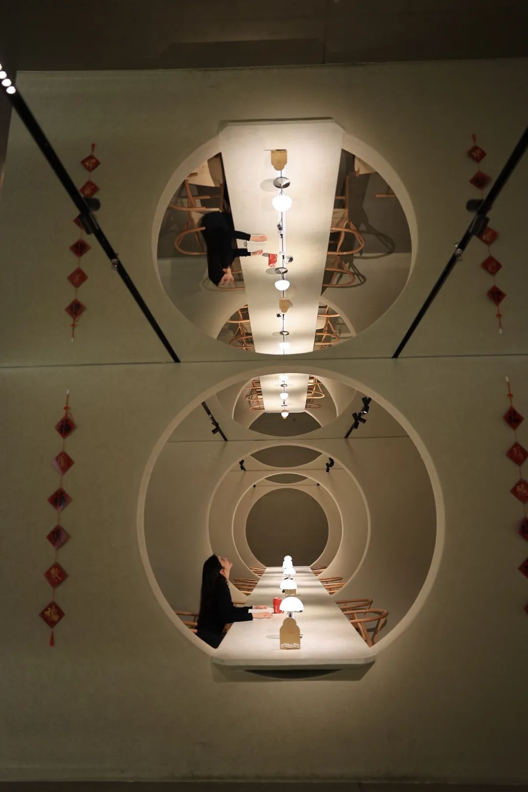 迎月区域,是一家咖啡店与社区图书借阅区的巧妙结合。这里的图书与市、区、街道三级图书馆联动,借阅、还书都极为方便。一个个圆弧形隔断,既保证了读者之间互不干扰,又增添了浓厚的东方美学韵味。拿上一本书,配上一杯香醇的咖啡,在此阅读,安静又惬意。