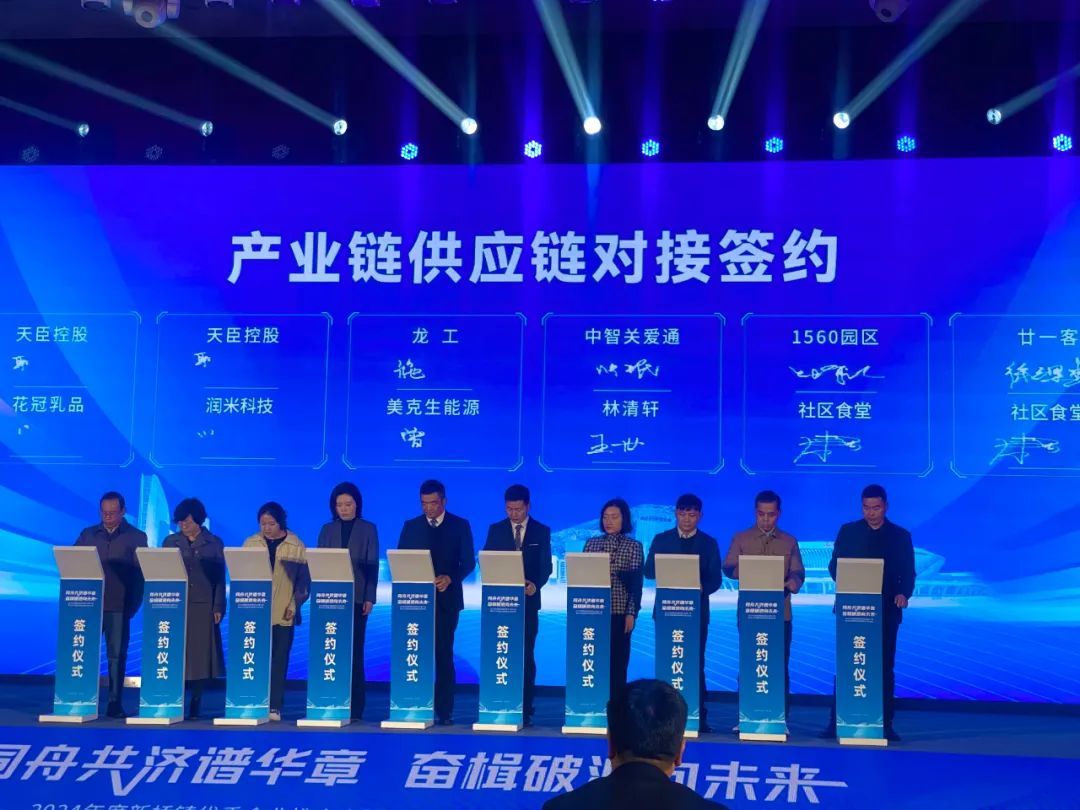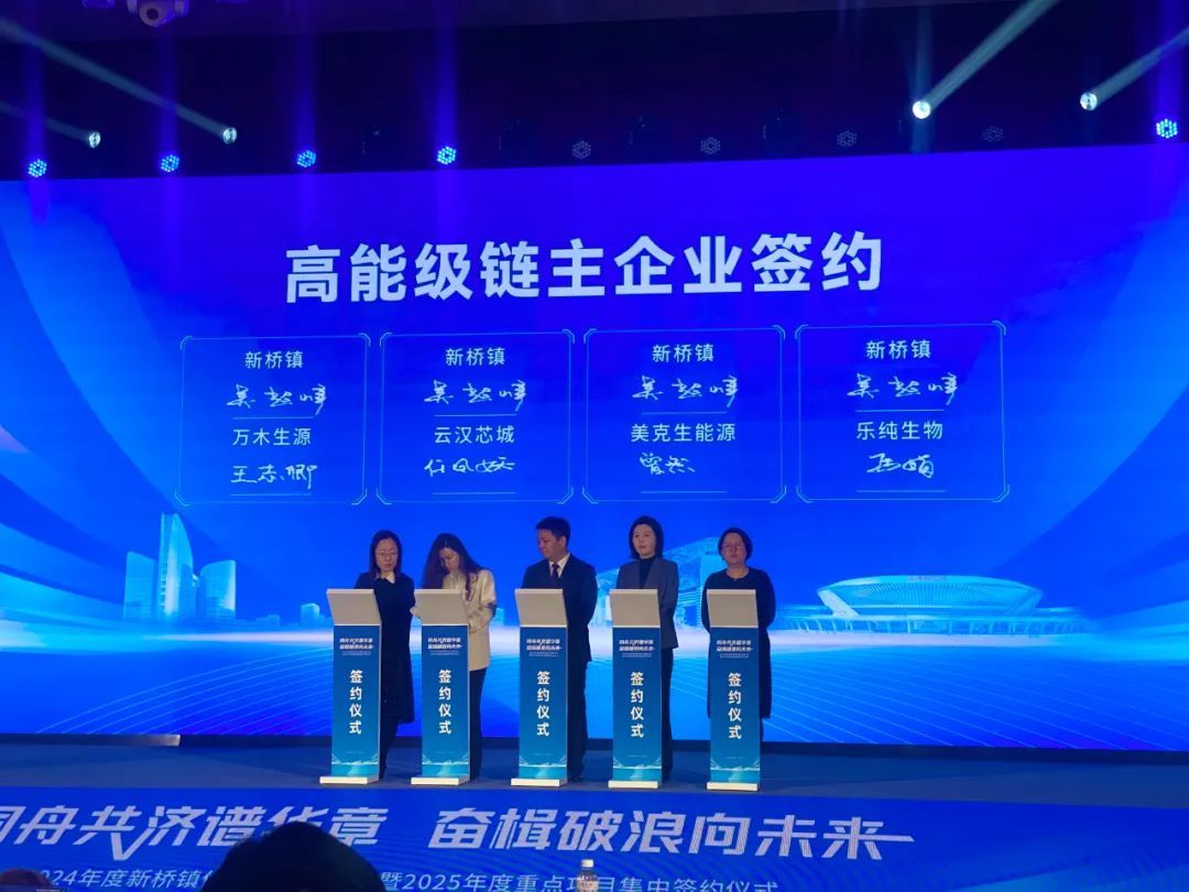 链主企业处于产业链核心位置和关键环节,发挥链主、龙头企业作用,可助力实现产业集聚发展。大会上,万木生源、云汉芯城、美克生能源、乐纯生物4家高能级链主企业进行集中签约。
